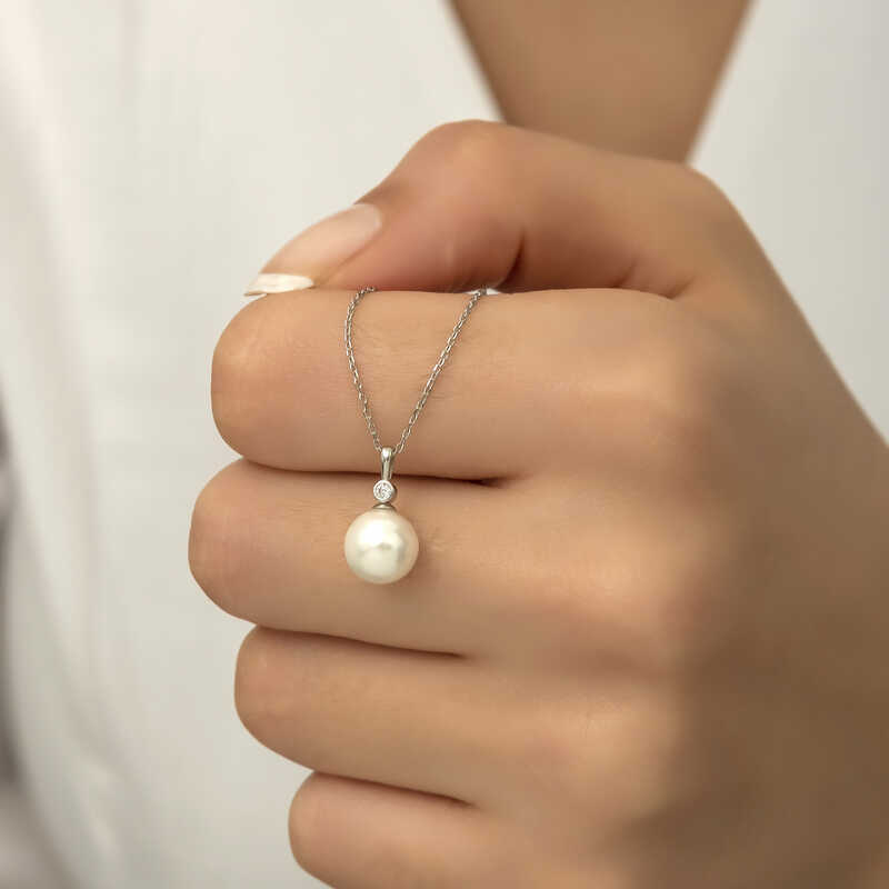 925 Ayar Gumus Yuvarlak Inci Kadin Gumus Kolye