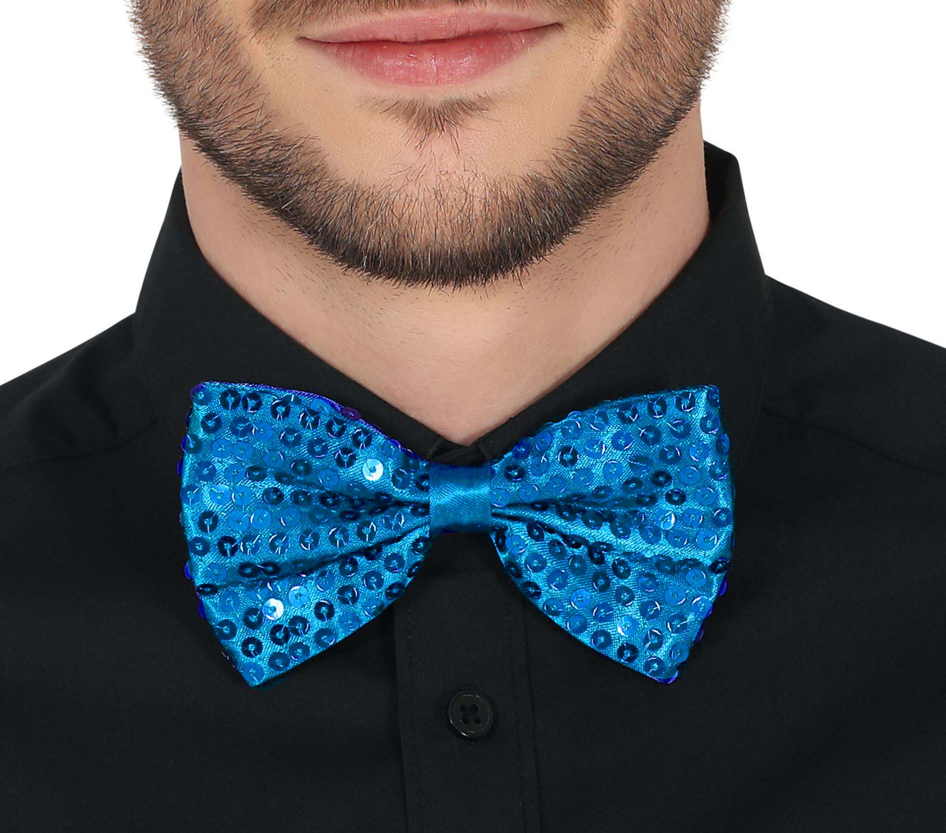 Açık Mavi Turkuaz Payetli Pullu Papyon