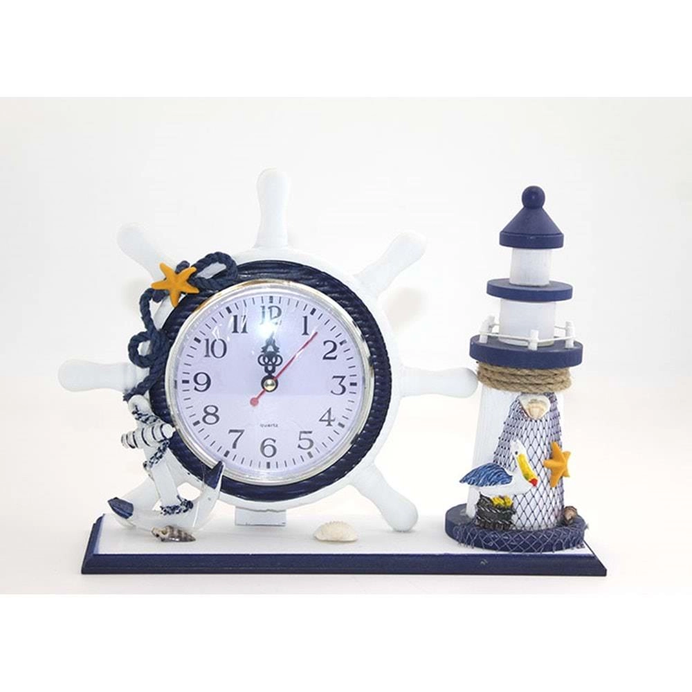 Ahşap Marin Deniz Feneri Dümenli Saat