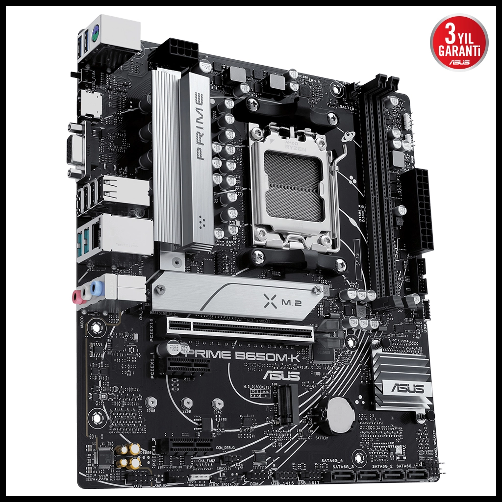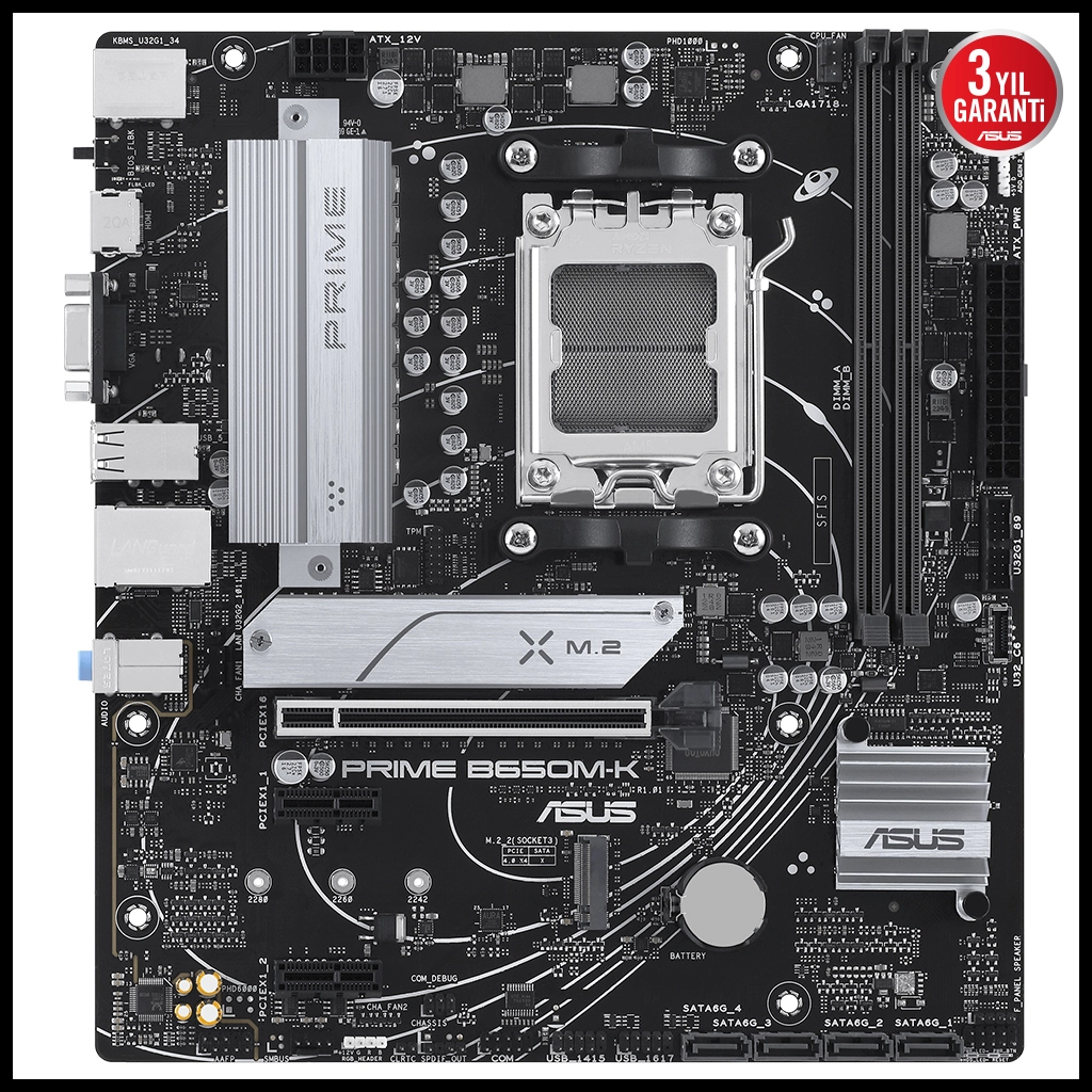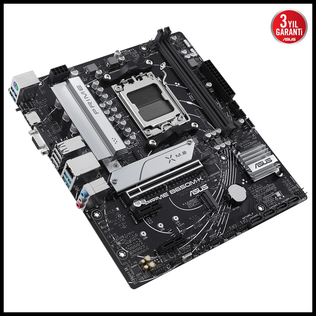 Asus Prime B650M-KASUS Prime serisi anakartlar, AMD Ryzen 7000 serisi islemcilerin tüm potansiyelini ortaya çikarmak için ustalikla tasarlanmistir. Saglam bir güç tasarimi, kapsamli sogutma çözümleri ve akilli ayarlama seçenekleriyle övünen PRIME B650M-K, sezgisel yazilim ve donanim yazilimi özellikleri araciligiyla kullanicilara ve PC DIY üreticilerine çesitli performans optimizasyonlari saglar.