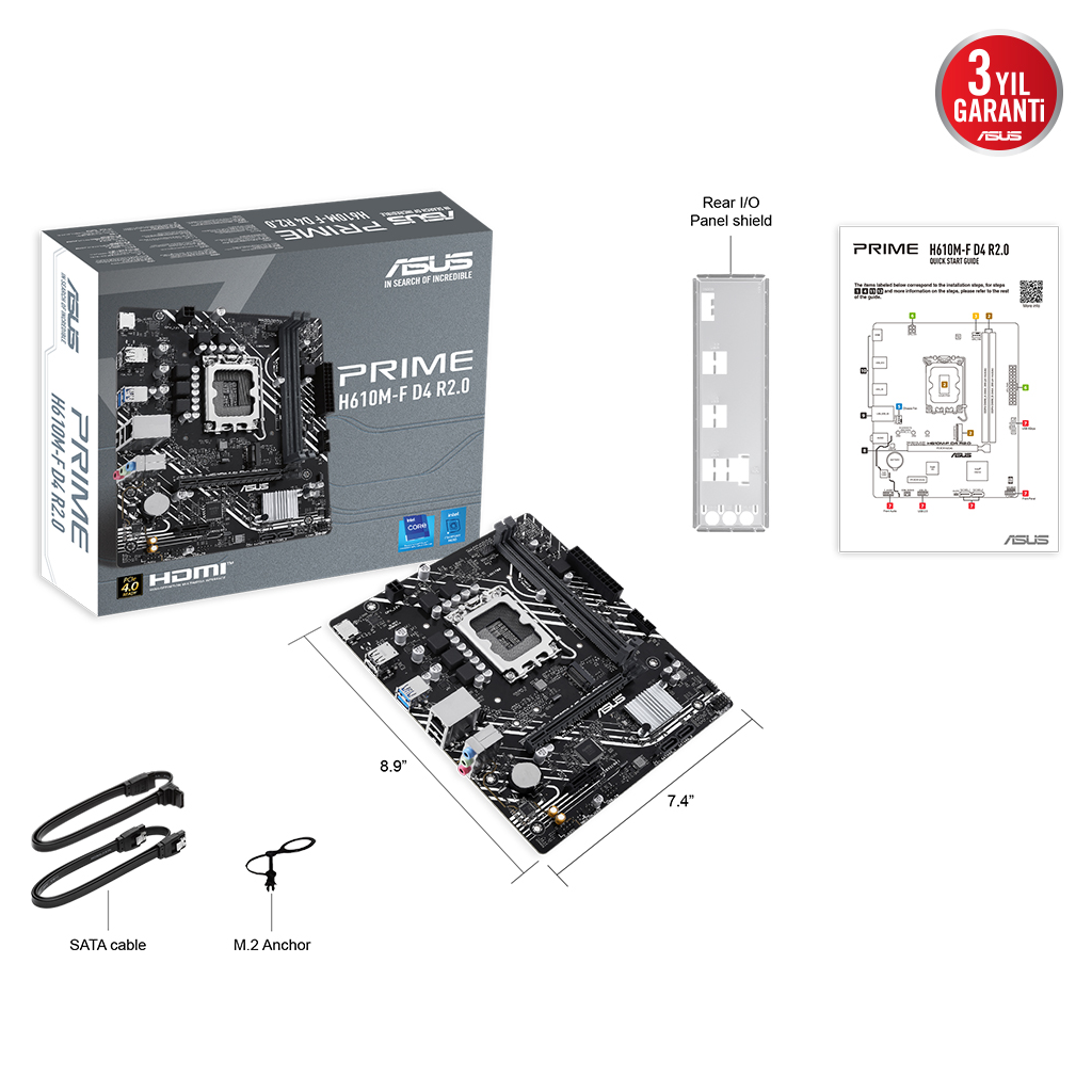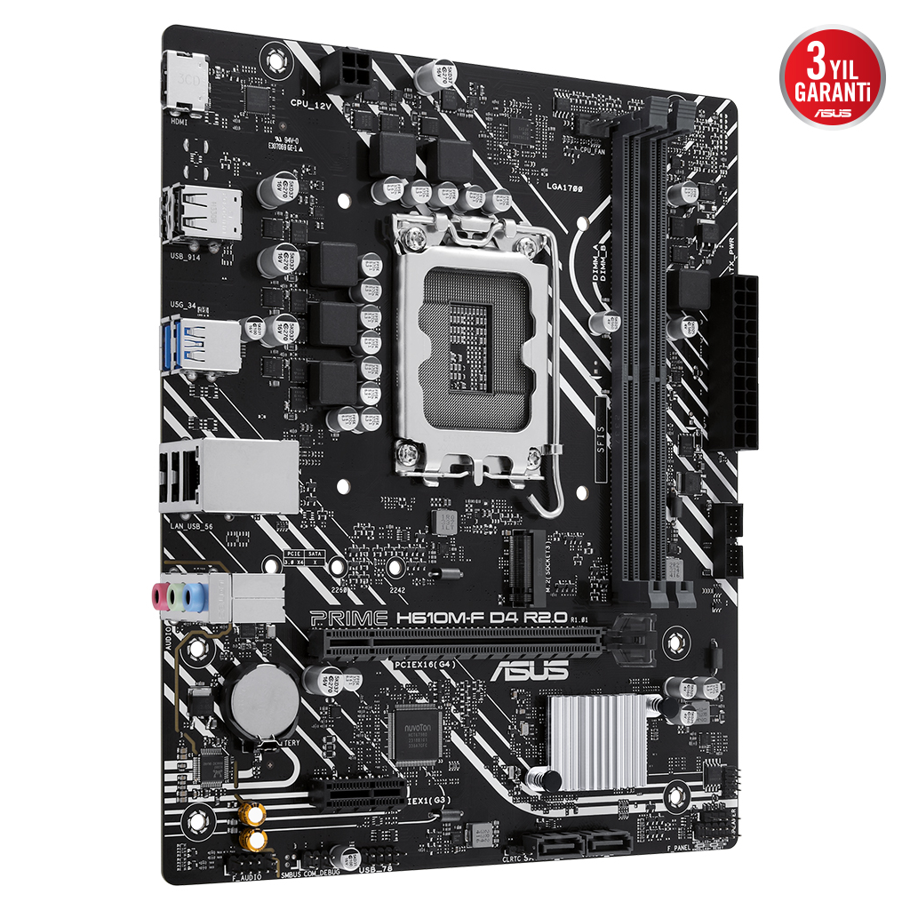 ASUS PRIME H610M-F D4 R2.0 Intel® H610 LGA 1700 micro-ATX anakart, PCIe 4.0, M.2 yuvasi, DDR4, Realtek 1Gb Ethernet, HDMI™, SATA 6 Gbps ve USB 5Gbps baglanti noktalari