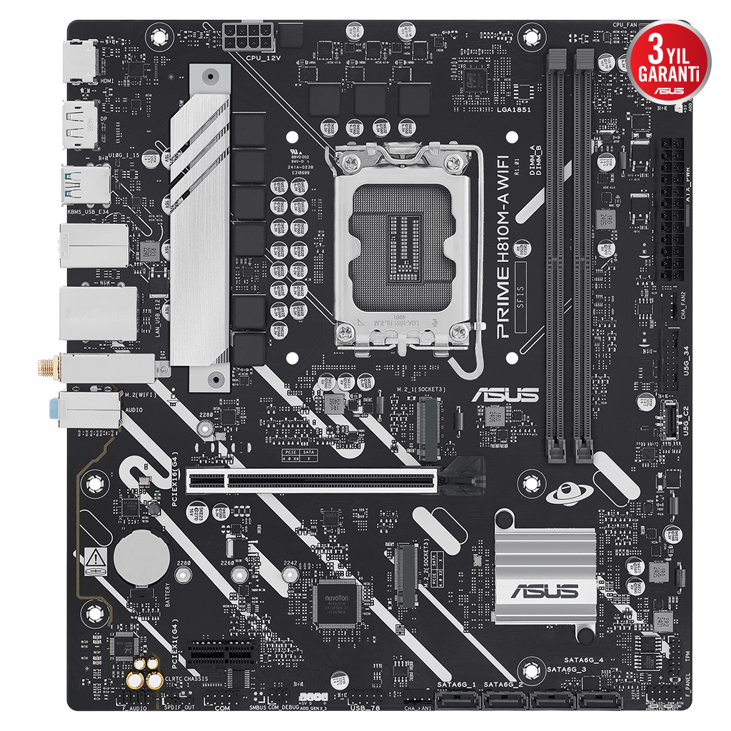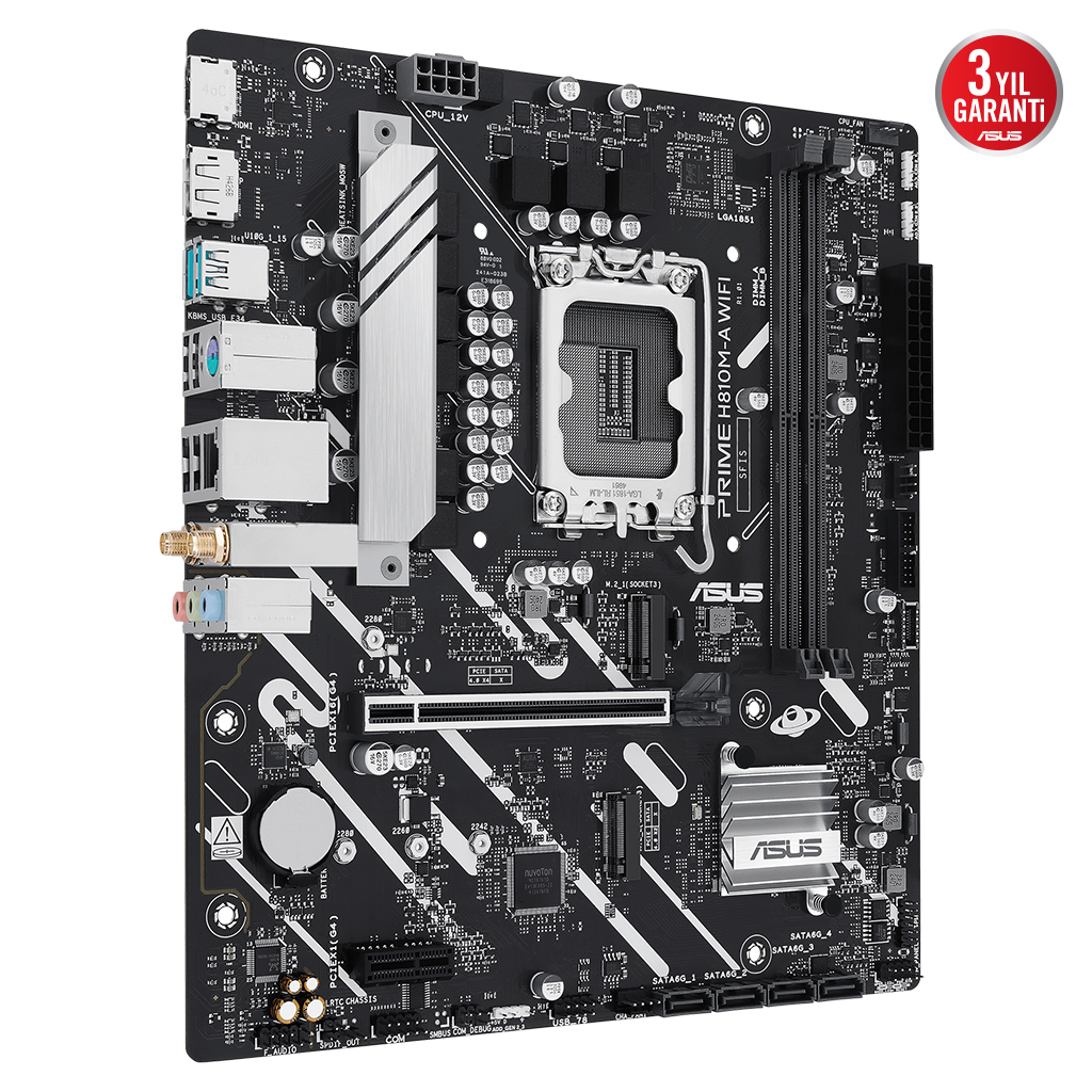 ASUS PRIME H810M-A WIFI, 2xDDR5, 2x M.2, HDMI, DP, Wi-Fi 6, Bluetooth 5.3, Intel Core Ultra CPU(Seri 2), LGA1851 Soket, ATX Anakart