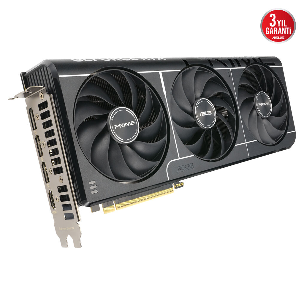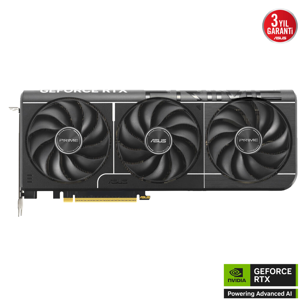 Prime RTX 5070, üç adet eksen teknolojili fanin ekran kartinin yan havalandirmasindan en iyi sekilde faydalanmasi ve en uygun termal performans sunmasi için özenle planlanmis koruma, sogutma blogu ve isi borusu düzeniyle 2,5 yuva yer kaplayan tasarima sahip.