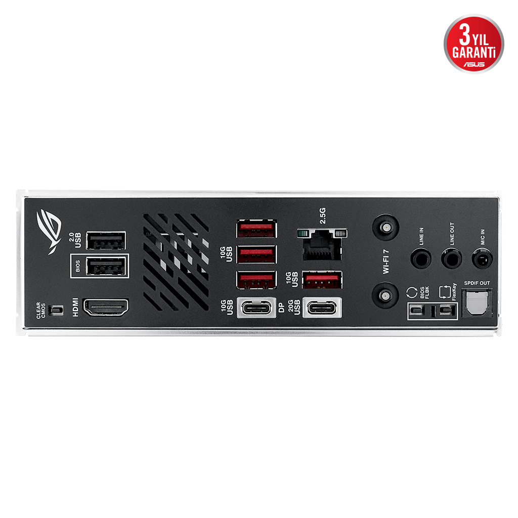 ROG Strix B850-I Gaming WiFi, 10 güç asamasi, hiper hizli DDR5 yuvalari ve PCIe® 5.0 baglantilari sunar. Ürün, iki adet adet dahili PCIe® 5.0 M.2 SSD yuvasi, USB 20Gbps Type-C® destegi, WiFi 7, ASUS AI Danisman, AI Overclocking, AI Networking II ve Aura Sync RGB aydinlatma özelliklerine sahip.