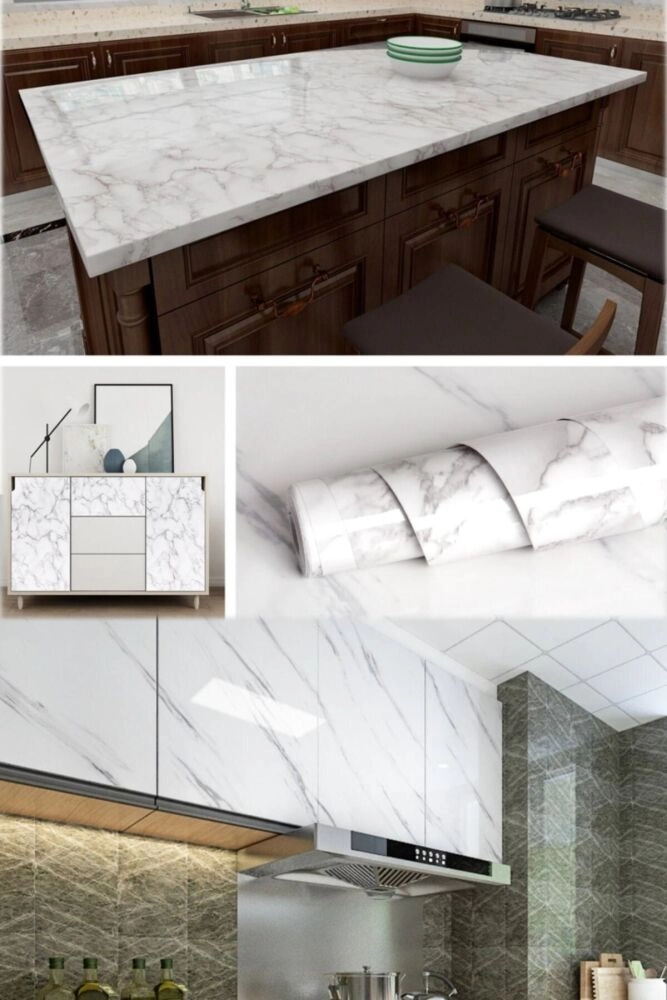 Beyaz Mermer Desenli Yapışkanlı Tezgah Folyosu (3 mt.x 60 cm)
