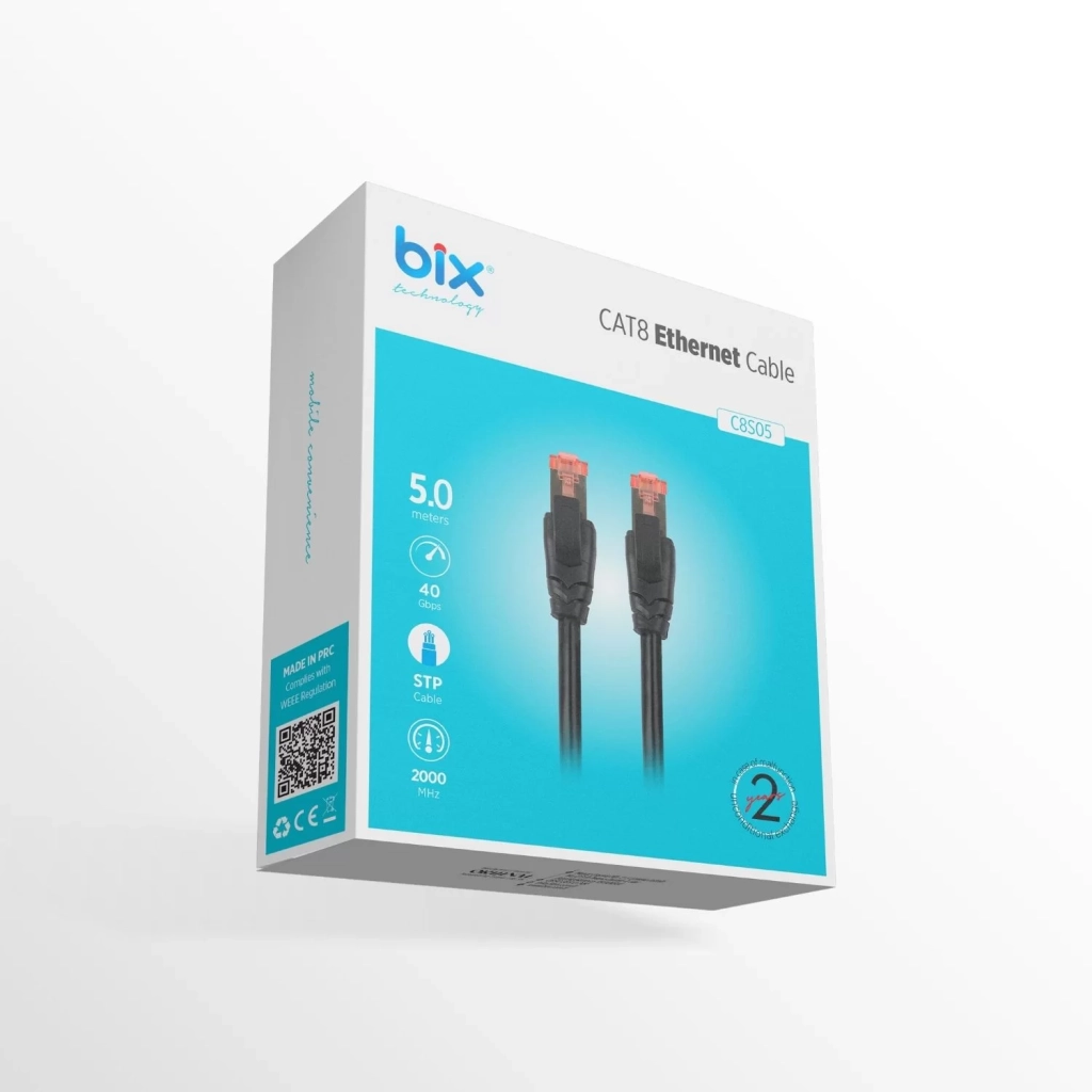 BIX C8S05, CAT8, Patch, 5Mt, Kablo (Siyah)
