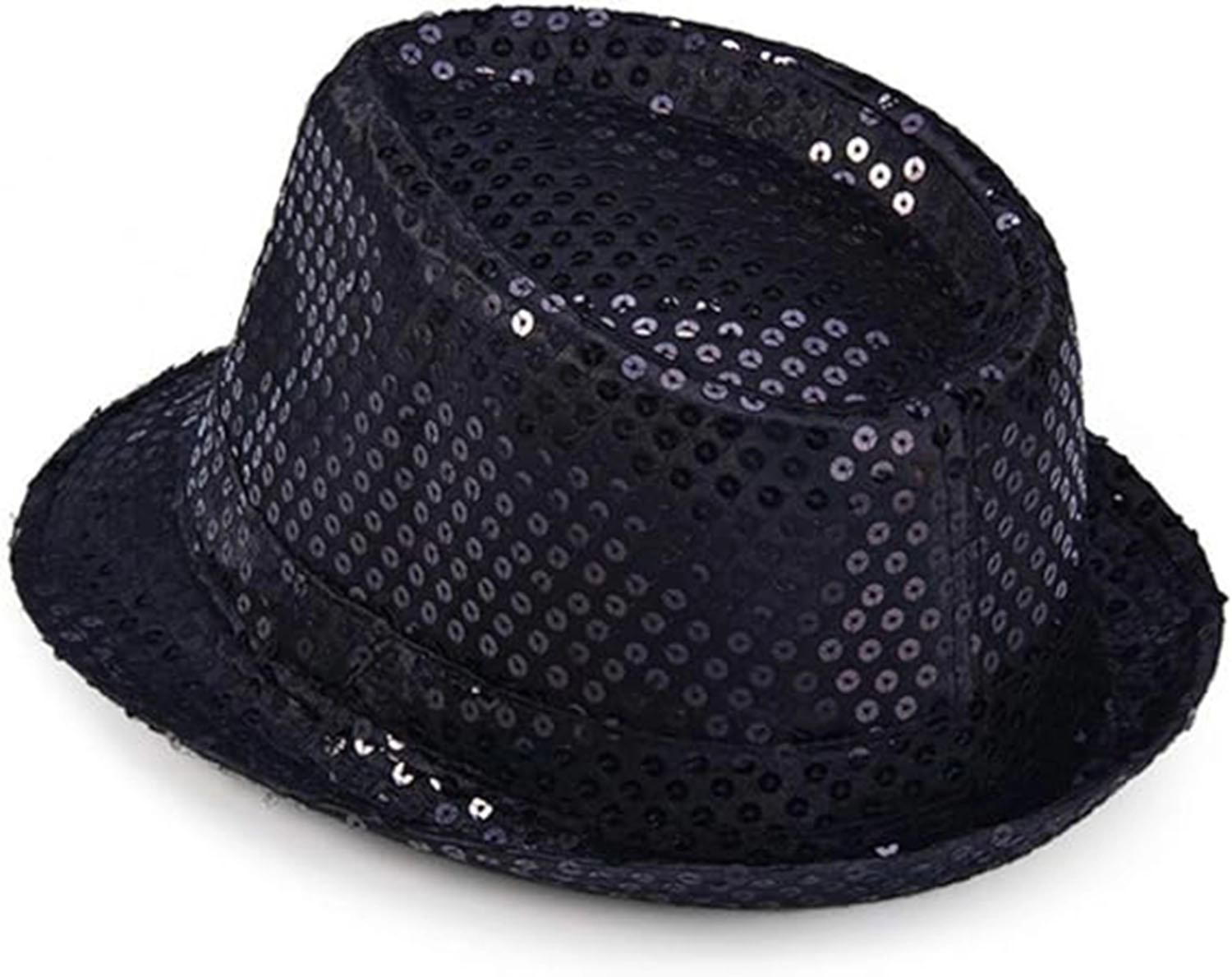 Bu şapka, ister bir gösteride sahneye çıkın ister bir kostüm partisi için giyinin, göz alıcı bir görünüm oluşturmak için mükemmeldir. Yumuşak siyah payetlerle kaplı şapka, ışıltılı bir etki oluştururuyor.