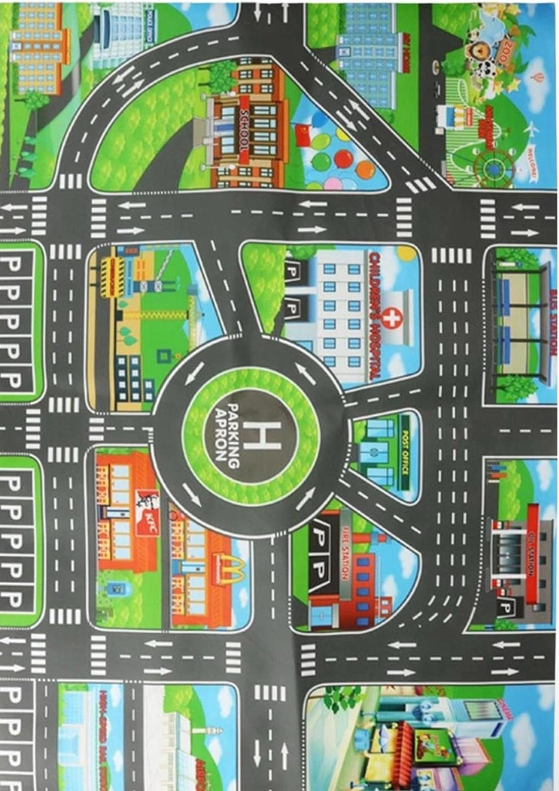 - Yolda Oyun Süresi: Araba Halımızda renkli bir şehir manzarasını keşfedin ve canlı yollar ve binalarla yol maceralarını daha ilginç hale getirin. Çocuğunuzun hayal gücünü harekete geçirin ve daha fazla eğlenceyi teşvik eden canlı bir oyun alanı yaratın.