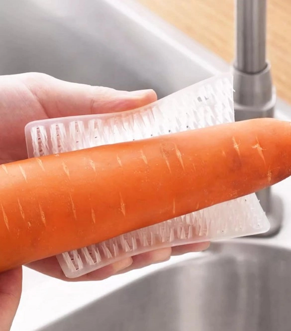 Çok Amaçlı Sebze ve Meyve Temizleme Fırçası: Bu küçük, şeffaf fırça, patates, havuç, elma gibi sebze ve meyveleri yıkamak ve temizlemek için tasarlanmıştır.