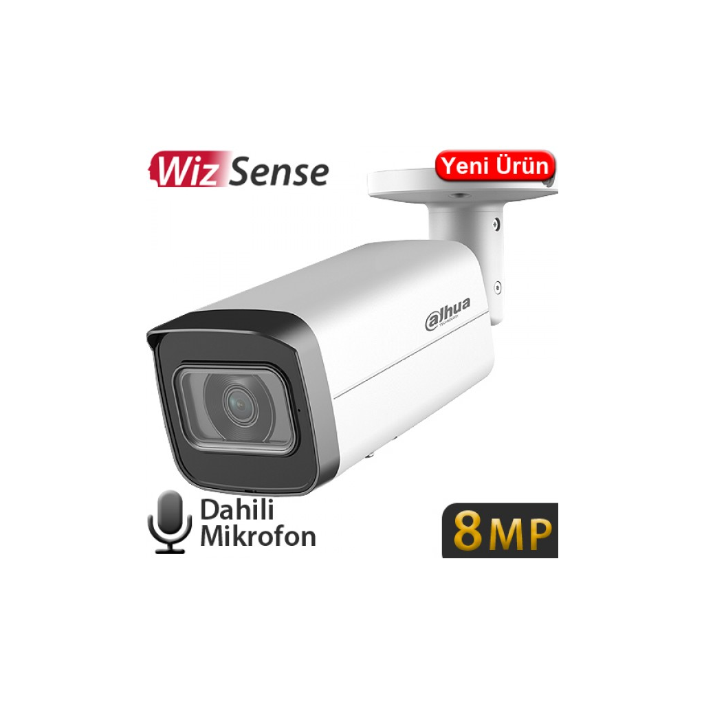 DAHUA IPC-HFW2841T-AS-0360B, 8Mpix, 3,6mm Lens, H265+, 80Mt Gece Gorusu, Dahili Mikrofon, Starlight, IP67, PoE Bullet IP Kamera