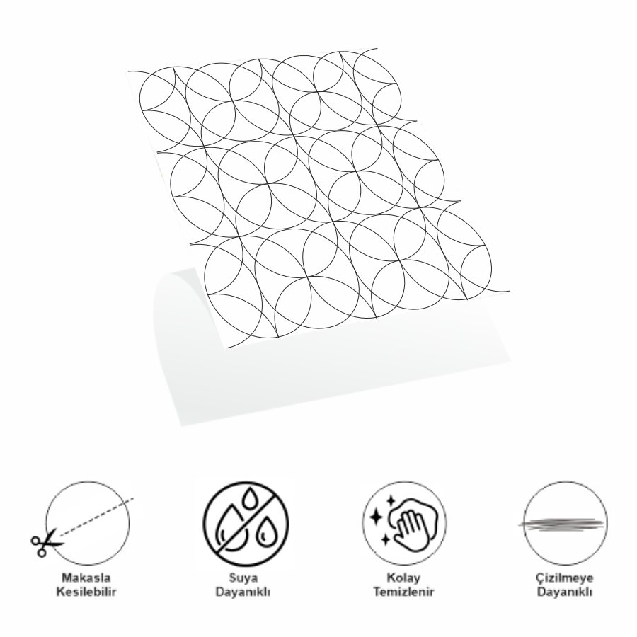 Decohandy Pvc Duvar Karosu 30x30cm 4'lü Paket - Siyah Daire Geometrik Desen 0,36m2