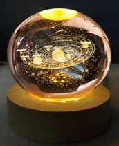 Dekoratif Gezegen Tasarımlı Ahşap altlıklı Işıklı Cam Küre Büyük BoyCam:8cm Ahşap:2cm