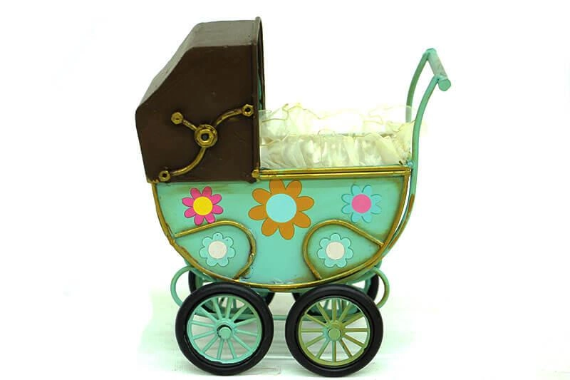 Dekoratif Metal Bebek Arabası Biblo Vintage Hediyelik
