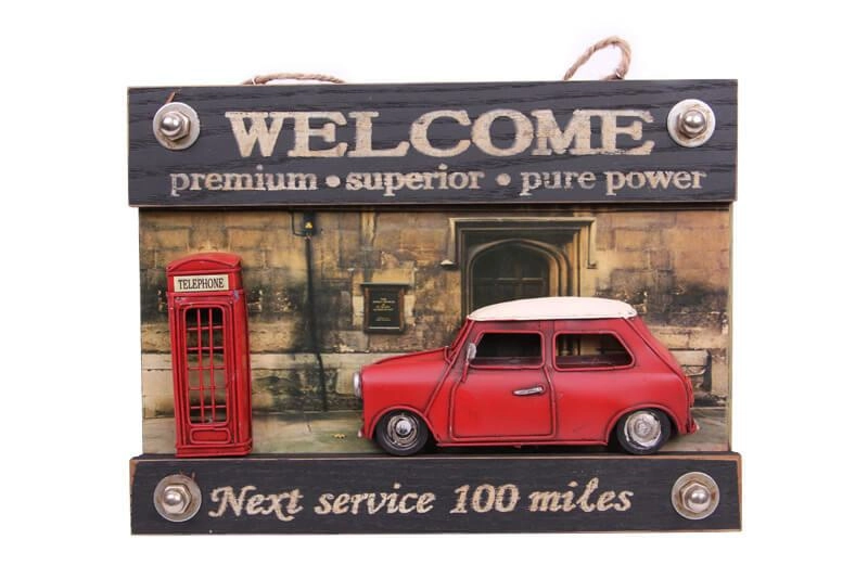 Dekoratif Metal Kapı Yazısı Araba ve Telefon Kulübesi Dekorlu