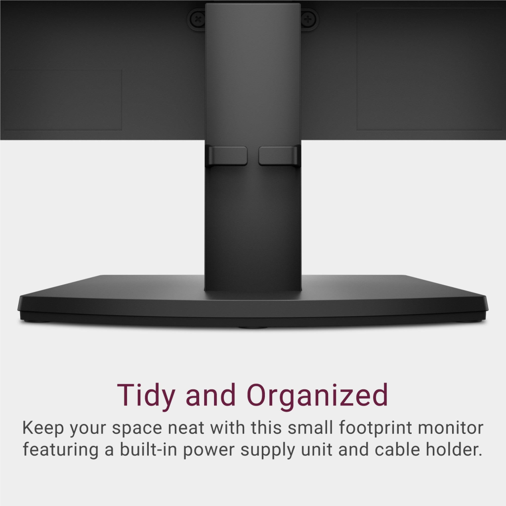 Tidy and organised: Keep your space neat with this small footprint monitor featuring a built-in power supply unit and cable holder.