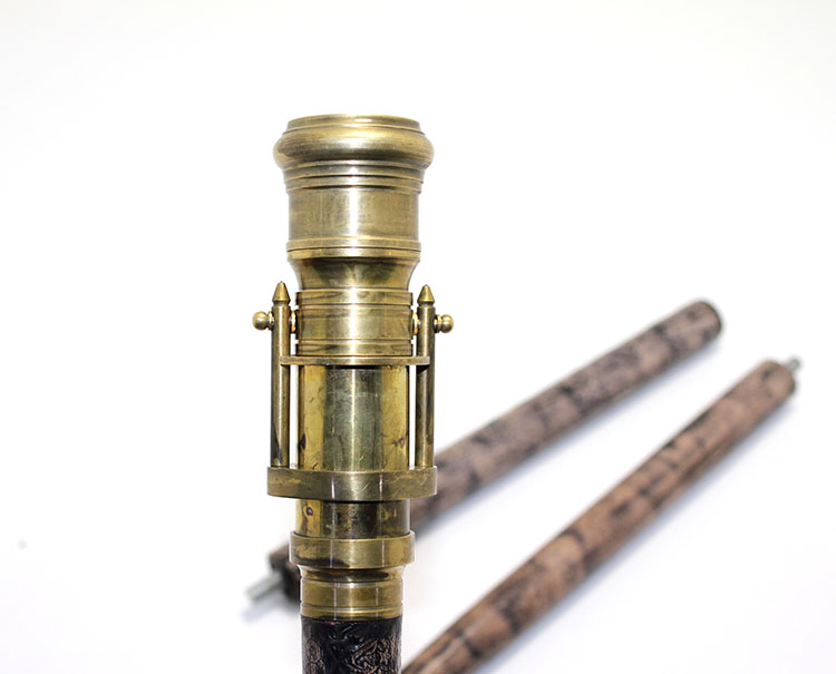 Deri İşlemeli Pirinç Dürbün Pusula Baston Modeli