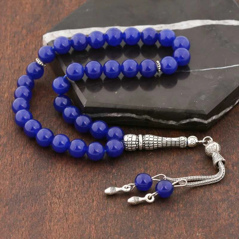 Doğaltaş Metal Püsküllü Mavi Yeşim Taşı Tesbih