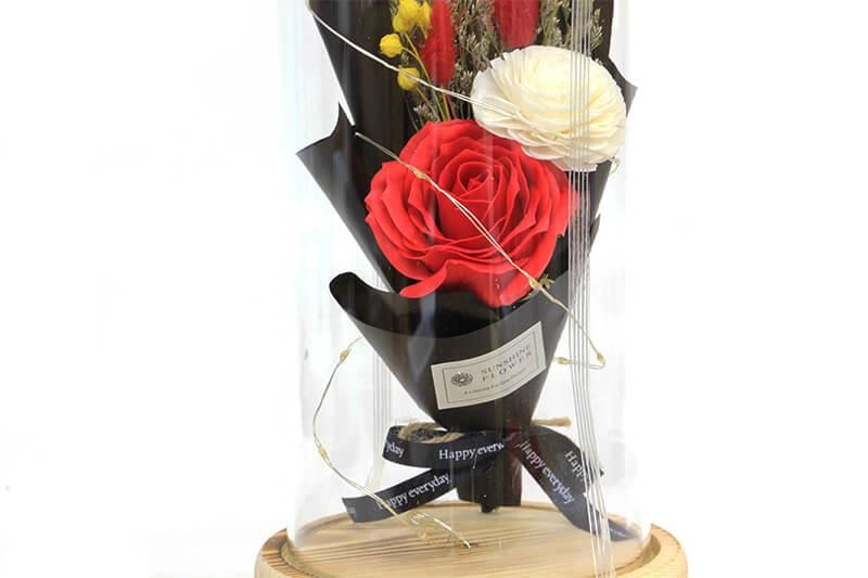 Fanus Gül 28/14cm Cam Fanus Led Işıklı Hediyelik