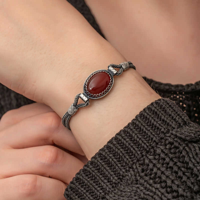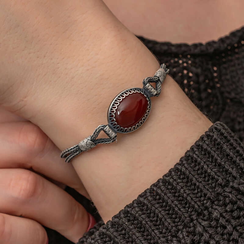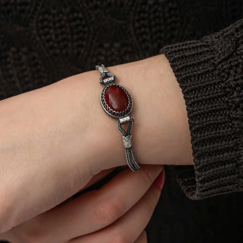 Gümüş Akik Taşlı Kazaziye Bileklik