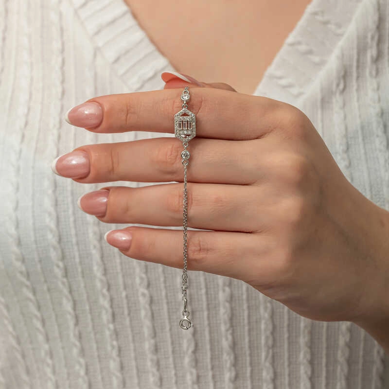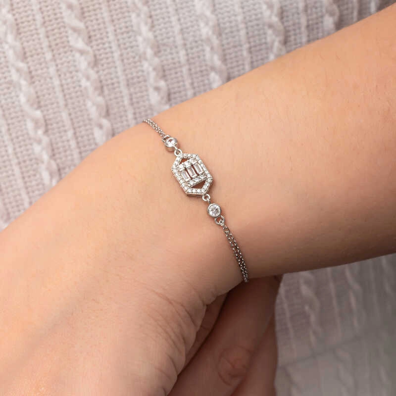 Gümüş Altıgen Baget Taşlı Kadın Bileklik
