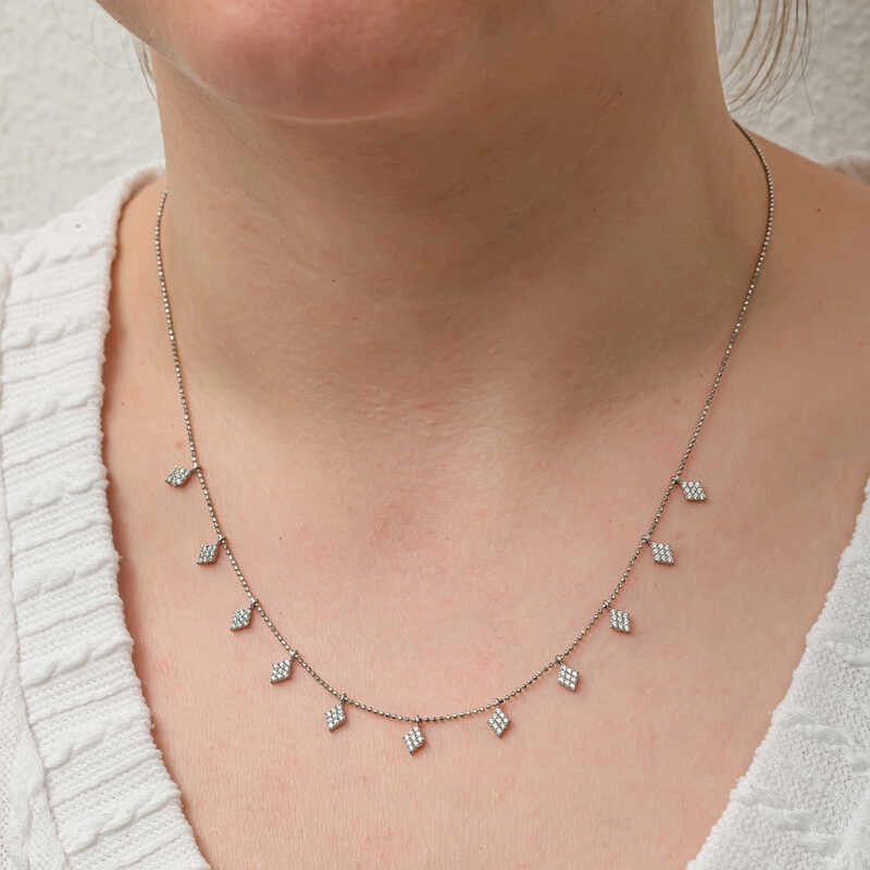 Gümüş Baklava Kesim Şans Kadın Kolye