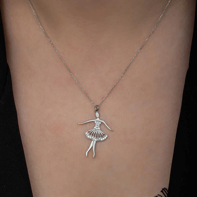 Gümüş Balerin Kadın Kolye