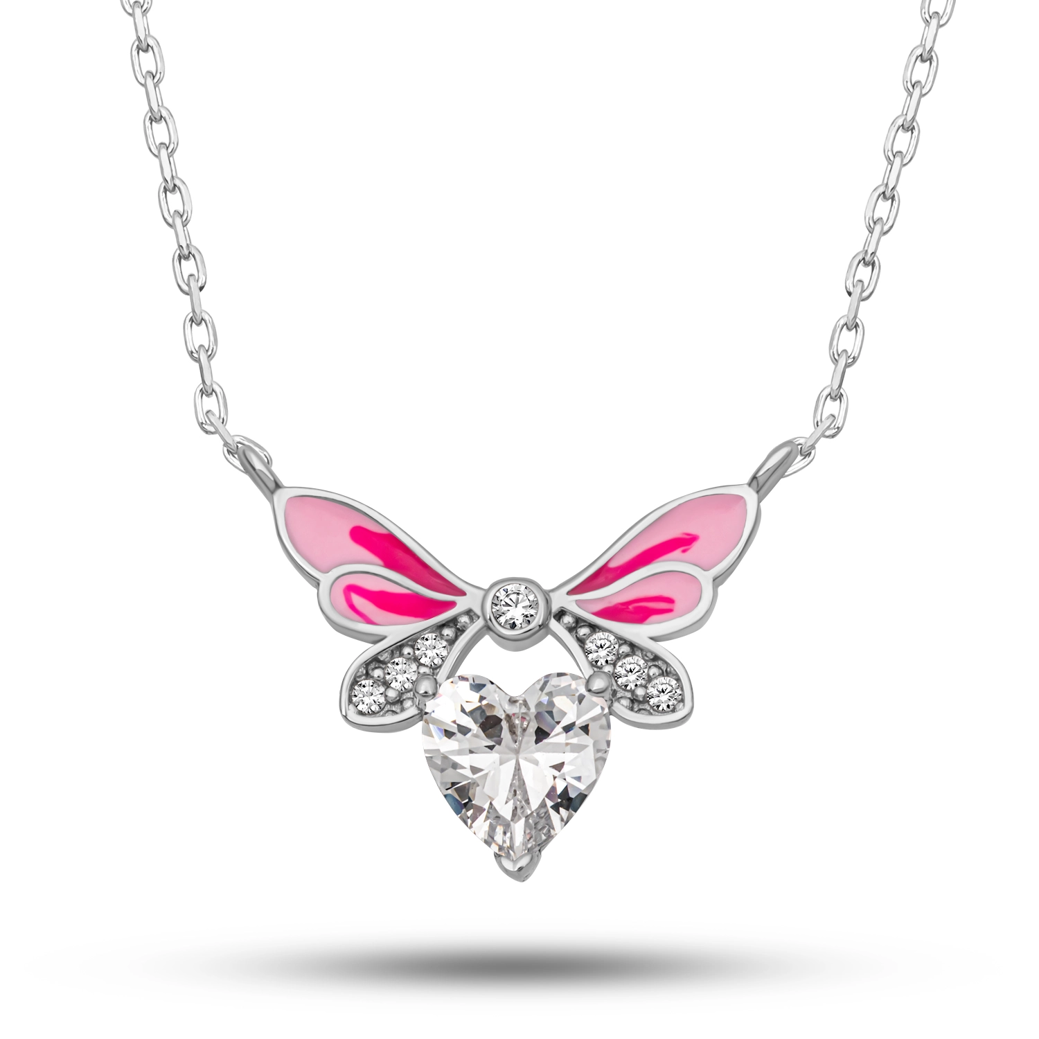 Gümüş Beyaz Kalp Peri Kanatlı Kolye