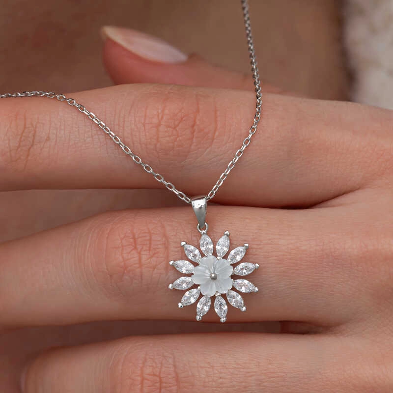 Gümüş Beyaz Manolya Çiçeği Kadın Kolye