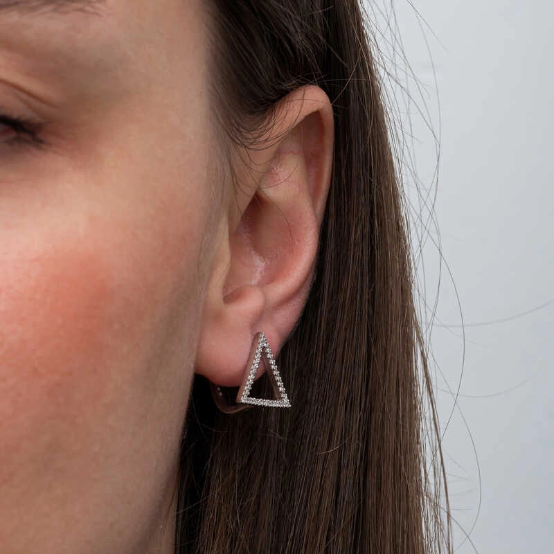 Gümüş Beyaz Taşlı Üçgen Küpe