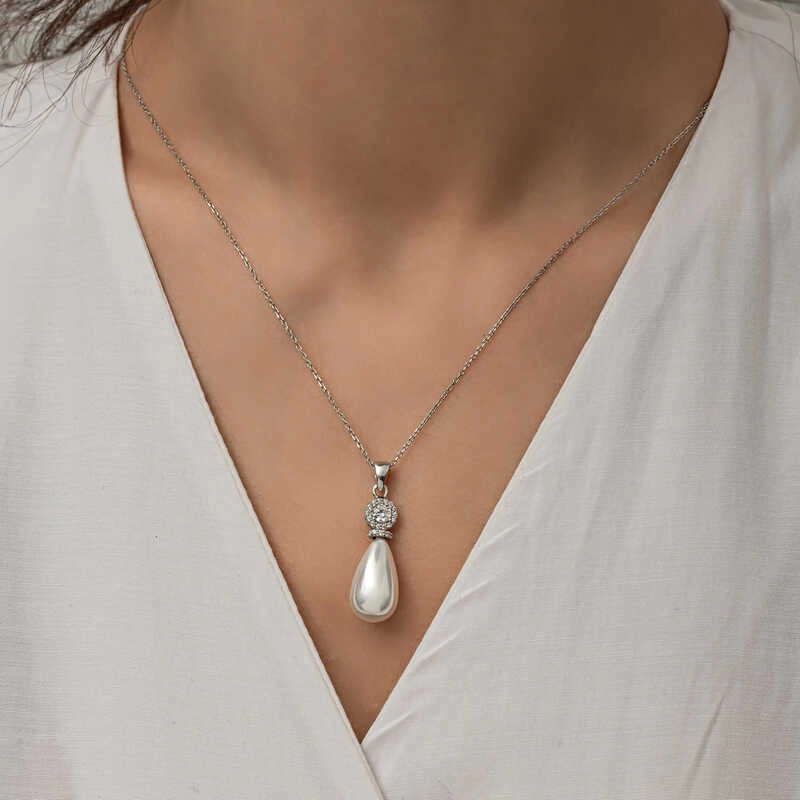 Gümüş Damla İnci Kadın Kolye