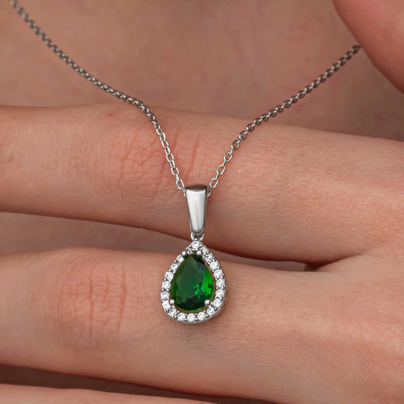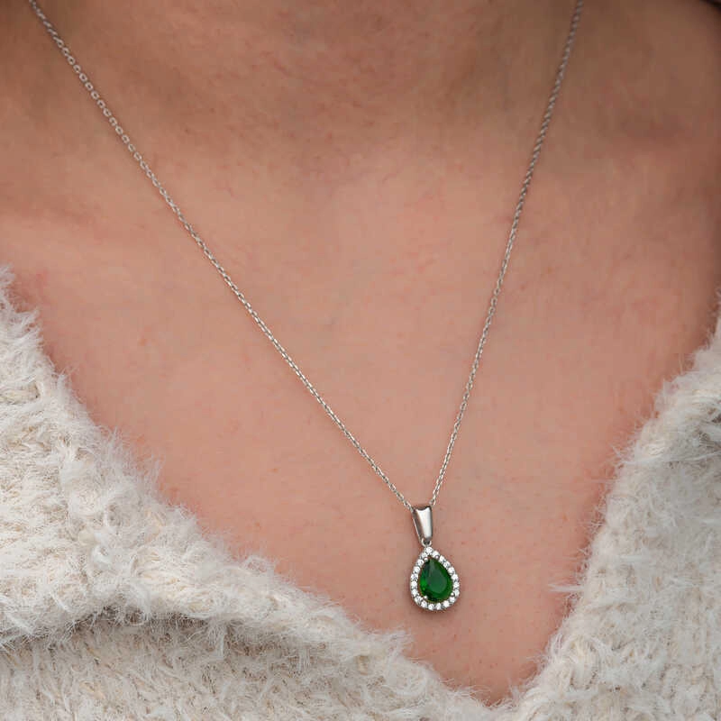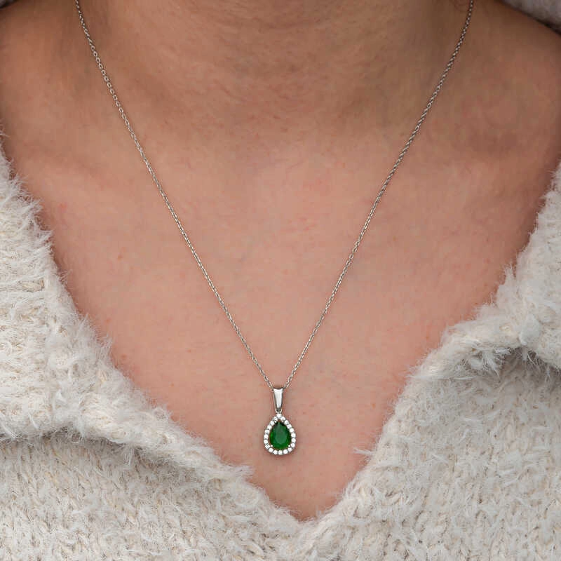 Gümüş Damla Zümrüt Taşlı Kadın Kolye