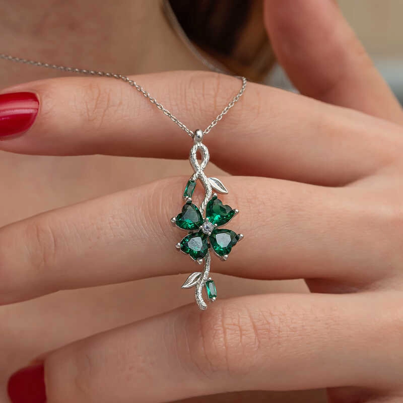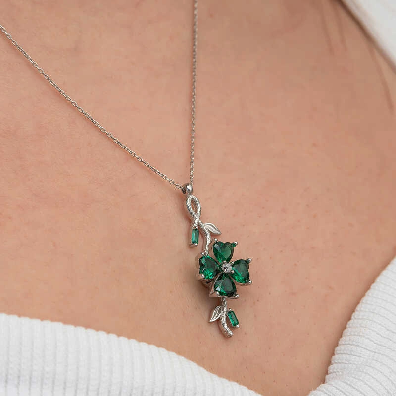 Gümüş Dönen Yeşil Yonca Kadın Kolye