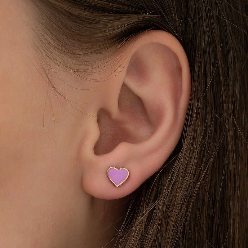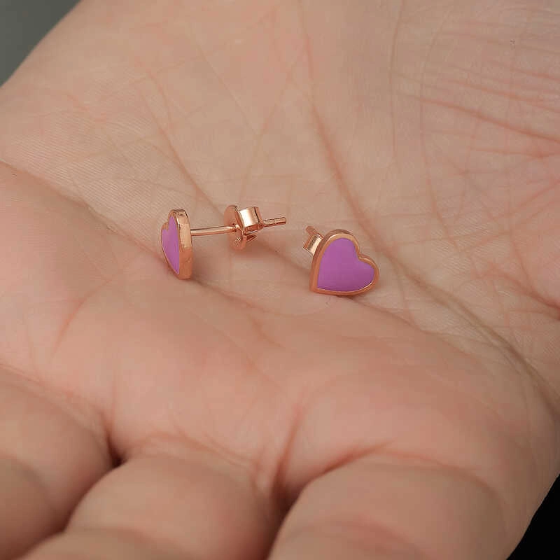 Gümüş Fosforlu Lila Kalp Küpe