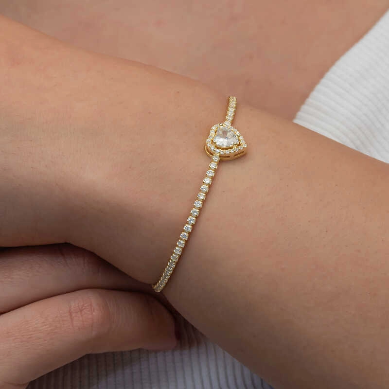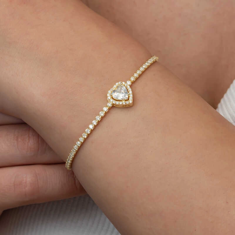 Gümüş Gold Kalpli Su Yolu Bileklik