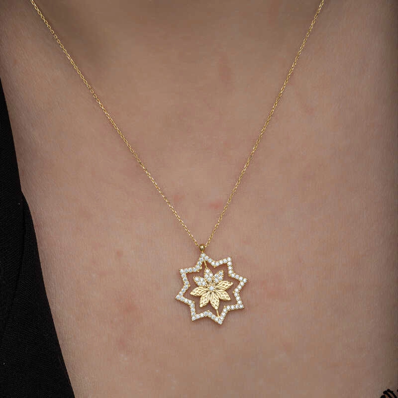 Gümüş Gold Kar Tanesi Kadın Kolye