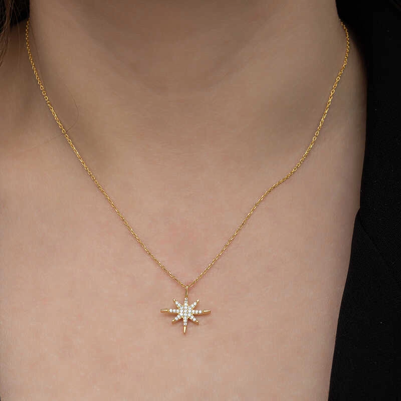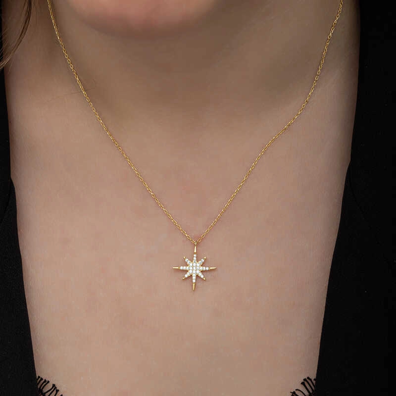 Gümüş Gold Kutup Yıldızı Kadın Kolye