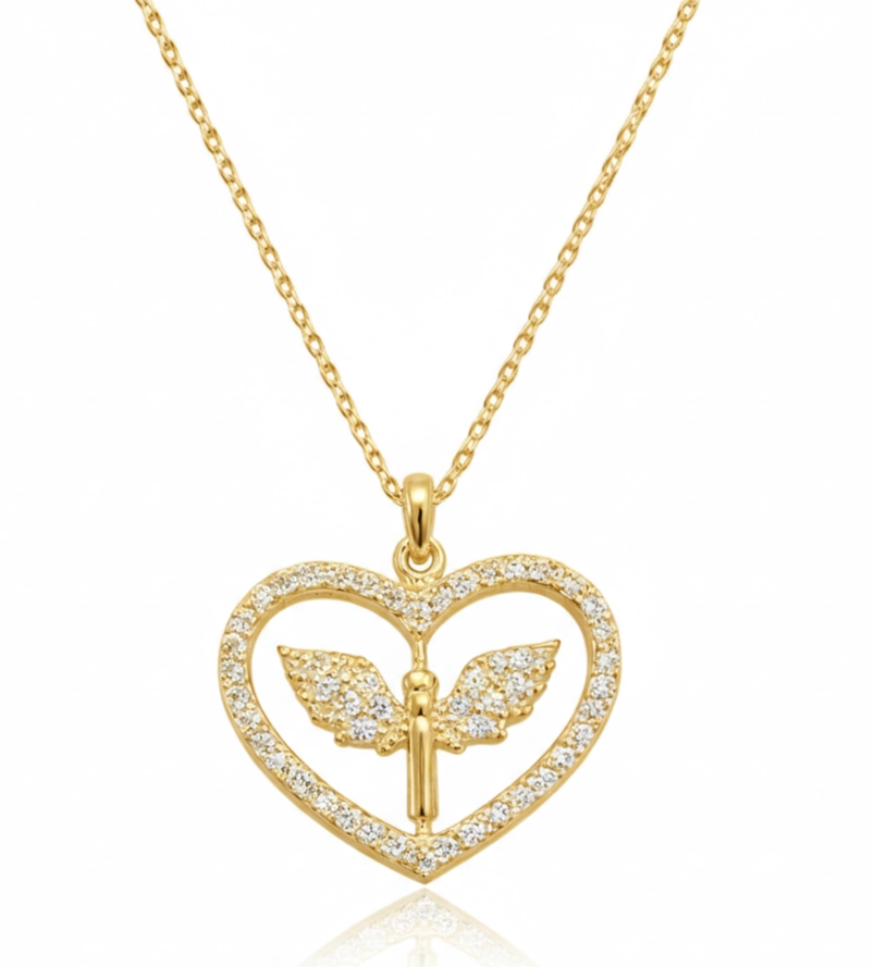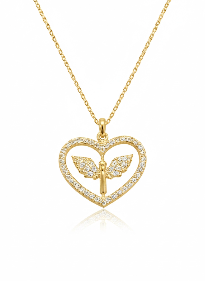 Gümüş Gold Mikail Meleği Figürlü Kalp Kadın Kolye