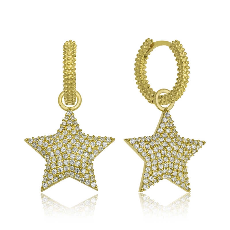 Yıldız, pek çok toplumda ve öğretide şans getirildiğine inanılan uğurlu bir semboldür. Venüs Gezegeninin enerjisini taşır. Venüs Gezegeni, aşk ve aşk enerjisinin de temsilcisidir. Bu şık zirkon taşlardan oluşan yıldız küpe; doğum günü hediyesi, sevgililer günü hediyesi veya özel günlerde tercih edilebilecek mükemmel bir seçenektir. Gümüş gold zirkon taşlı yıldız bayan küpe 925 ayar gümüşten imal edilmiştir. Bu küpe üzerinde gold kaplama vardır. Gold kaplama yapılan gümüş bayan küpe modelleri parlaklığını uzun süre muhafaza eder. Tüm gümüş bayan küpe modellerimizde olduğu gibi gümüş gold taşlı yıldız bayan küpe modeli de el emeği ile üretilmiştir. Gümüş ve değerli taşlar nedeniyle belirtilen ortalama ürün ağırlığında ± %10 sapma olabilmektedir.