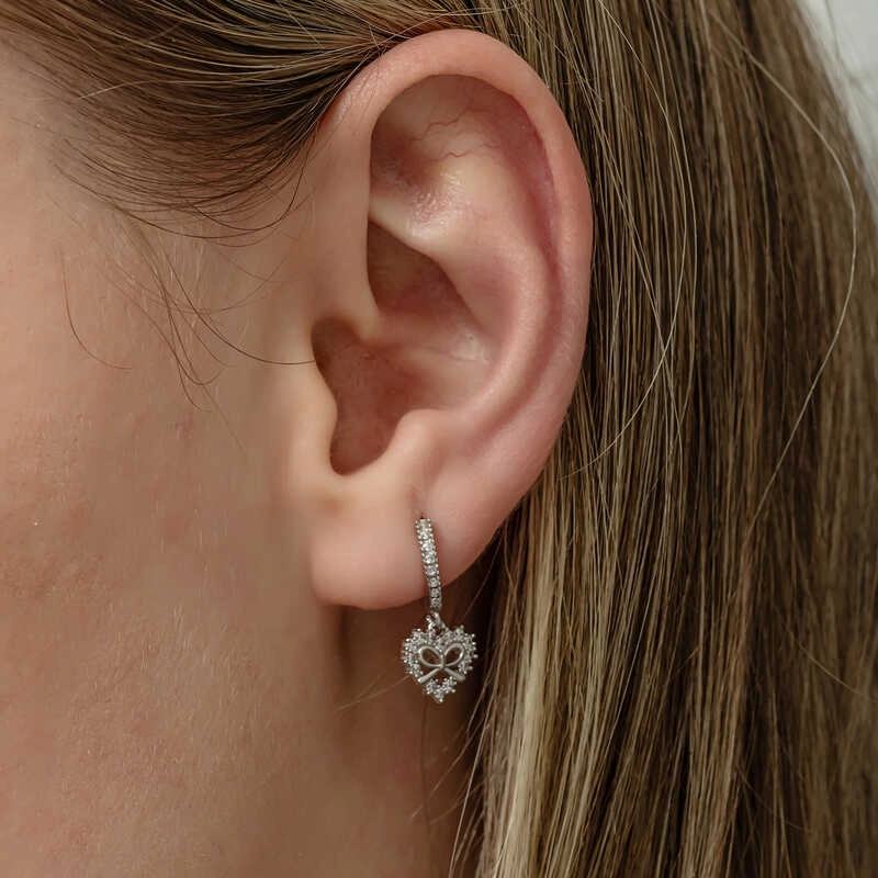 Gümüş Kalp Kurdele Sallantılı Kadın Küpe