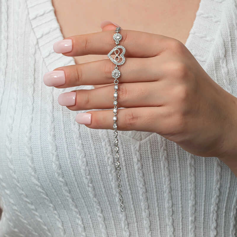 Gümüş Kalp Sonsuzluk Kadın Su Yolu Bileklik