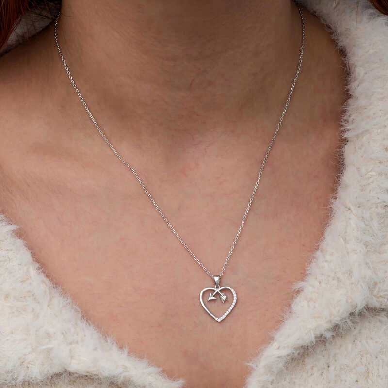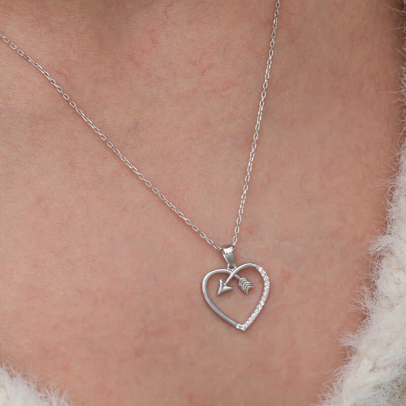 Gümüş Kalpli Ok Kadın Kolye
