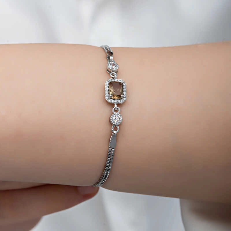Gümüş Kare Zultanit Taşlı Kadın Bileklik
