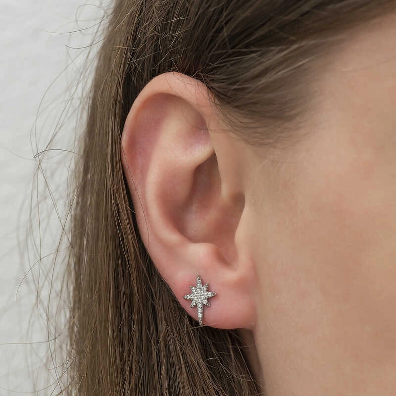 Her yaştan kadının stiline uyum sağlayabilecek farklı küpe modellerinin yer aldığı koleksiyonumuzda birbirinden özgün tasarımlı küpe modelleri sizleri bekliyor. Kutup yıldızı figürü kullanılarak hazırlanan küpe aklınızı başınızdan alacak. Günlük kullanıma uygun bir model olan küpe her an sizlerle birlikte. Göz kamaştıran yapısıyla tasarlanmış gümüş kutup yıldızı küpe yi severek kullanacaksınız. Bu koleksiyonda hem kendiniz, hem de sevdikleriniz için mutlaka uygun bir küpe bulacaksınız. Gümüş kutup yıldızı küpe, 925 ayar gümüşten imal edilmiştir. Gümüş üzerine rodyum kaplama yapılmıştır. Rodyum kaplama yapılan gümüş bayan küpeler parlaklığını uzun süre muhafaza eder, oksitlenmesi gecikir. Üzerinde bulunan taşlar zirkondur. Tüm gümüş bayan küpelerde olduğu gibi bu gümüş kutup yıldızı küpe modeli de el emeği ile üretilmiştir. Gümüş ve değerli taşlar nedeniyle belirtilen ortalama ürün ağırlığında ± %10 sapma olabilmektedir.