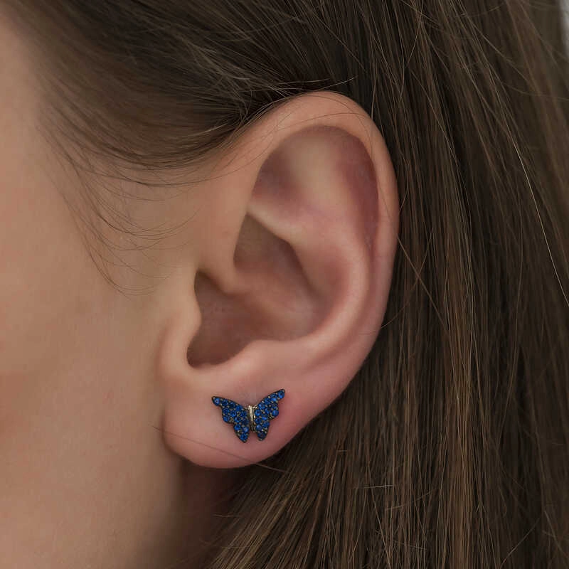 Gümüş Lacivert Kelebek Küpe