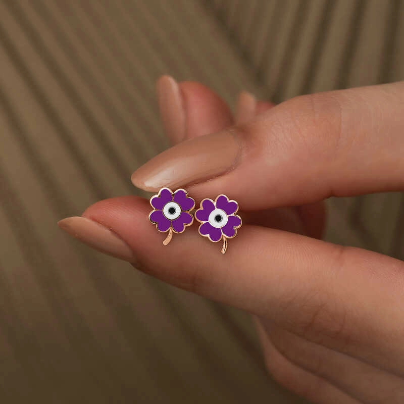 Gümüş Mor Yonca Küpe