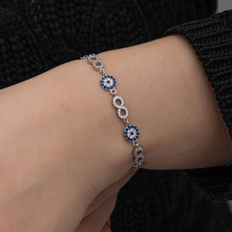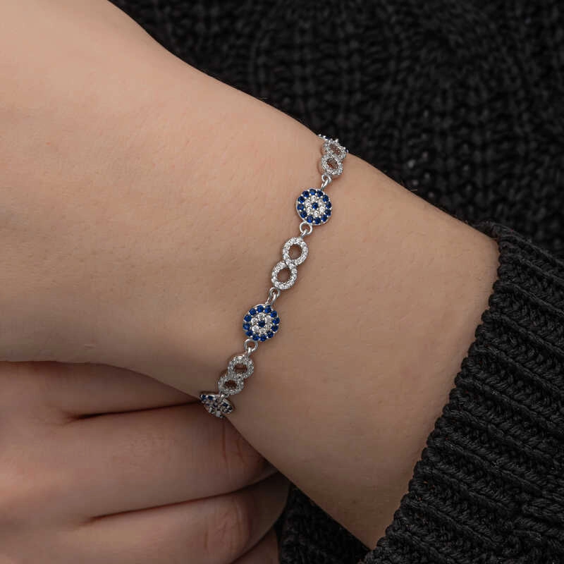 Gümüş Nazar Boncuklu Sonsuzluk Kadın Bileklik