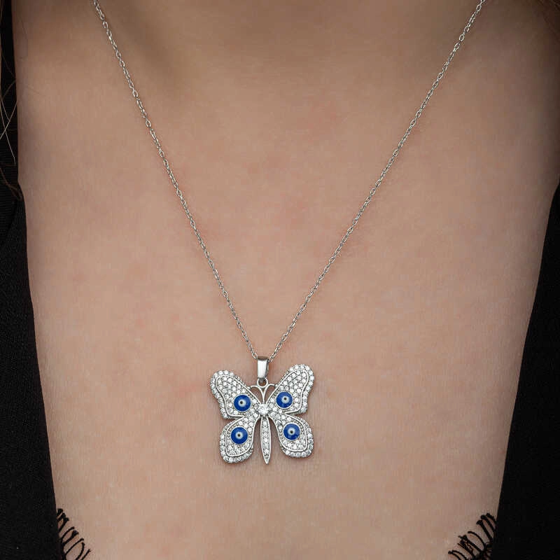 Gümüş Nazarlı Kelebek Kadın Kolye