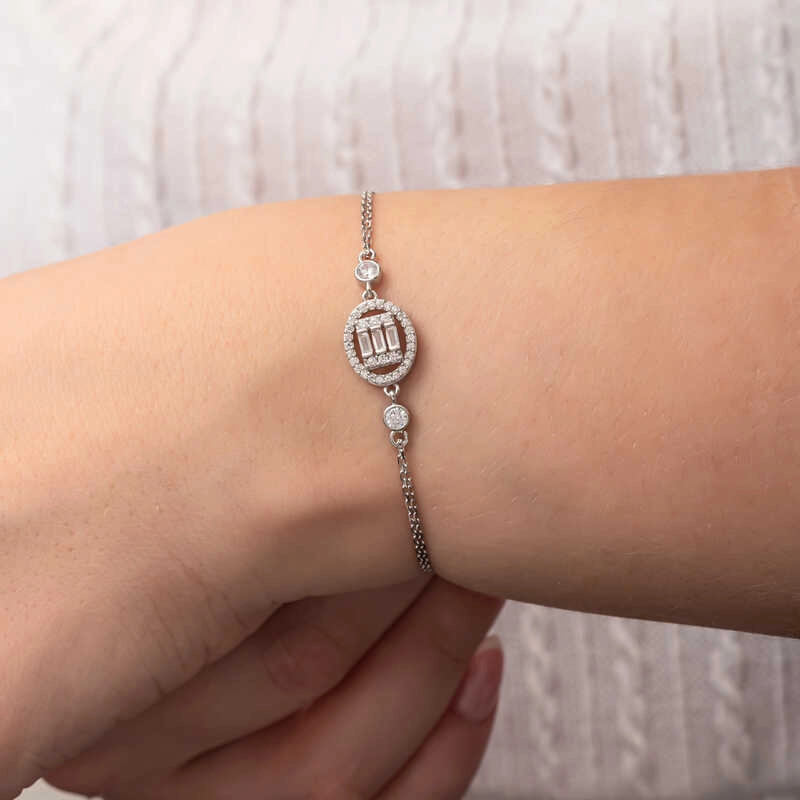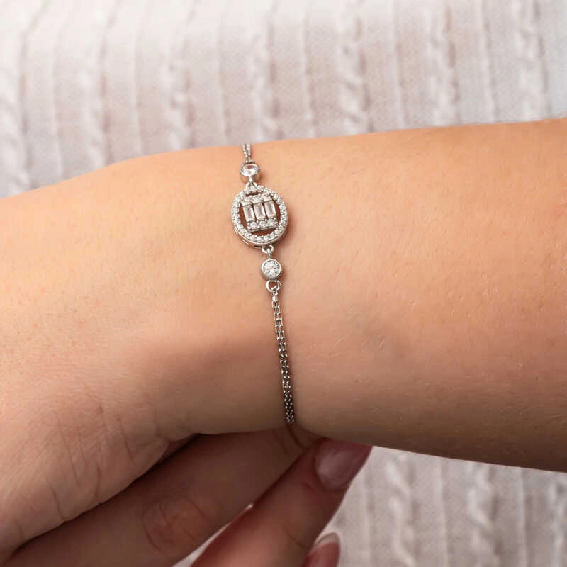 Gümüş Oval Baget Taşlı Kadın Bileklik
