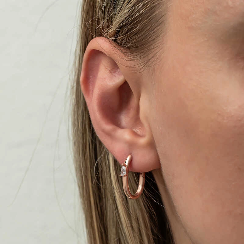 Gümüş Oval Damla Taşlı Kadın Küpe