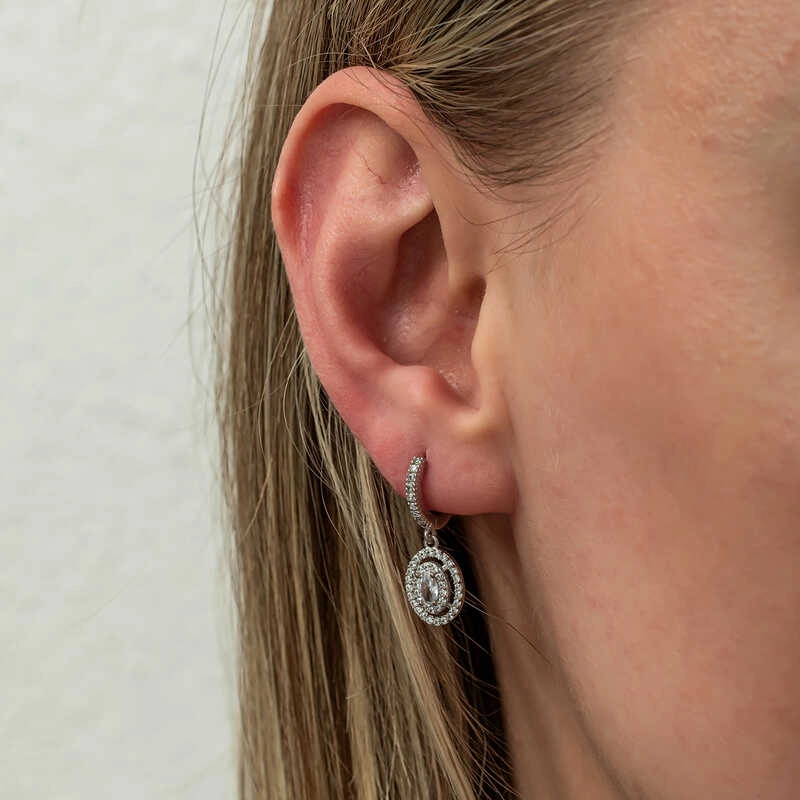 Gümüş Oval Taşlı Sallantılı Küpe